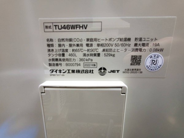 津市 ダイキン自然冷媒(CO2)・家庭用ヒートポンプ給湯機 貯湯ユニットTU46WFHV、ヒートポンプユニットRQW60WHV 給湯器交換工事