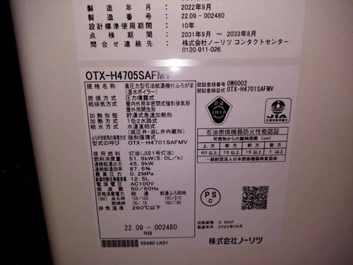 小牧市桜町 ノーリツ高圧力型石油給湯機付ふろがまOTX-H4705SAFMV 給湯器交換工事