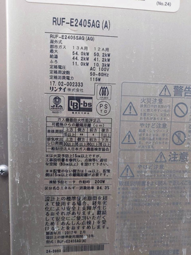 春日井市篠木町 リンナイ給湯器RUF-E2405AG(A)→ノーリツ給湯器GT-2470AW 給湯器交換工事